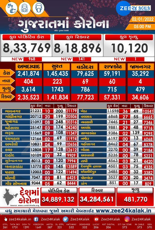 તારીખ 2/1/2022 ના દિવસે આવેલ કોરોના કેસ અપડેટ